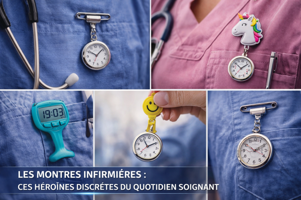 Dans l’univers hospitalier et libéral, il existe des outils indispensables : le stylo qui disparaît mystérieusement, le badge qui se coince dans les portes… et bien sûr la montre infirmière. Petite, souvent suspendue à la blouse, parfois décorée de licornes ou de motifs douteux, elle est pourtant l’un des objets les plus sérieux… malgré elle.